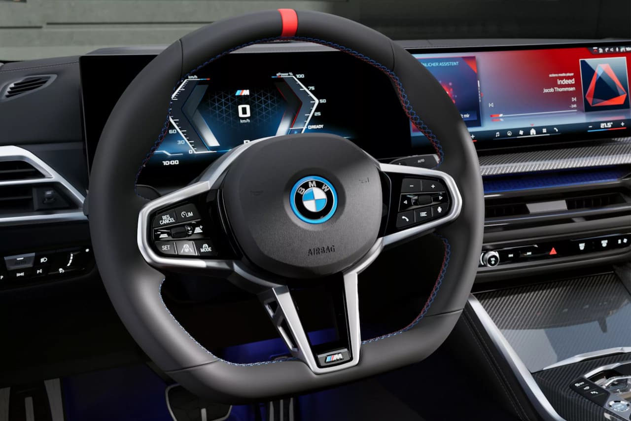 La motorisation 100% électrique de la BMW i4 M50 lui permet de passer de 0 à 100 km/h en 3,9 secondes. Le Gran Coupé 100% électrique par BMW puissance ///M : un nouvel avant avec des projecteurs LED adaptatifs, feux arrière à technologie laser, des jantes exclusives et rétroviseurs M. À l’intérieur, retrouvez le nouveau volant M gainé cuir pour des sensations de conduite typiques BMW.