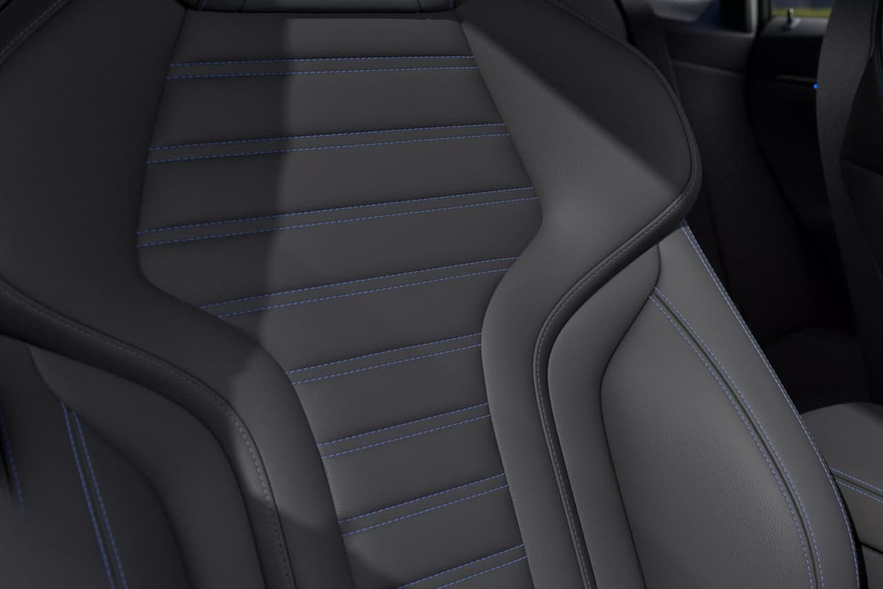 Le cuir Vernasca noir avec surpiqûres décoratives est particulièrement élégant. Les coutures à doubles replis de couleur et une surpiqûre décorative horizontale soulignent le style sportif de l’intérieur du véhicule.
