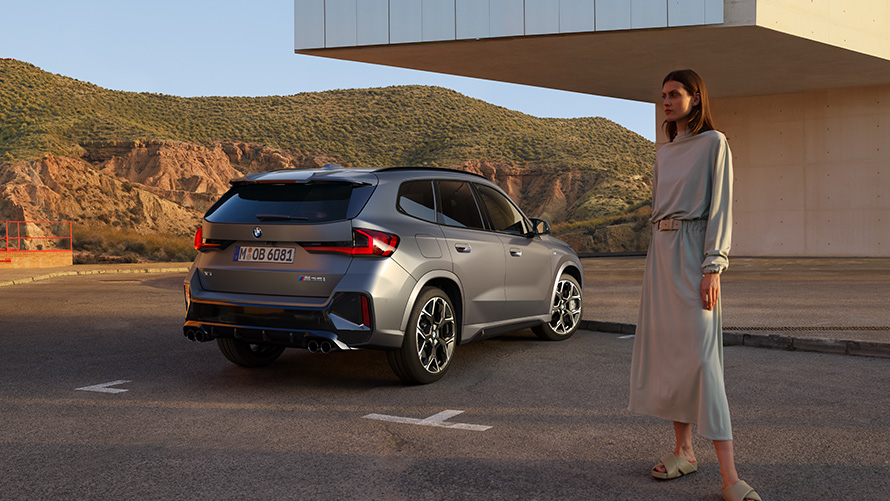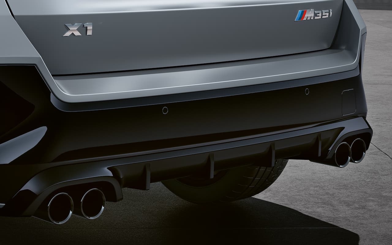 Les feux arrière étroits accentuent la poupe de manière élégante et moderne. Sa forme en L souligne la voie large de la Nouvelle BMW X1 M35i xDrive.