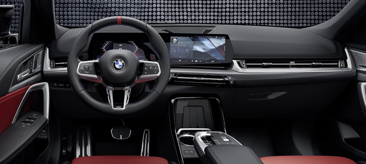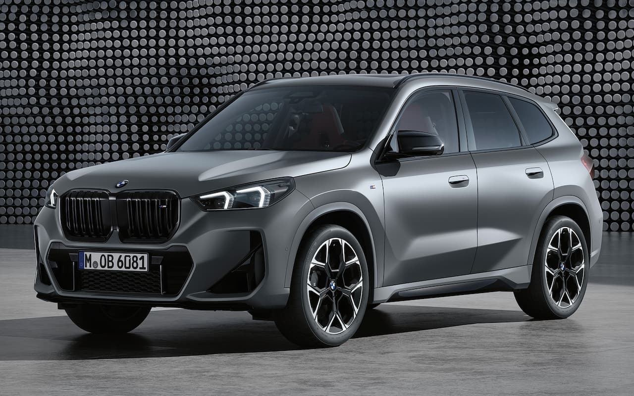Les grandes calandres M dominent la partie avant. Elles confèrent de la puissance à la Nouvelle BMW X1 M35i xDrive. Les passages de roue saillants et les feux avant élancés soulignent l'aspect athlétique du véhicule.